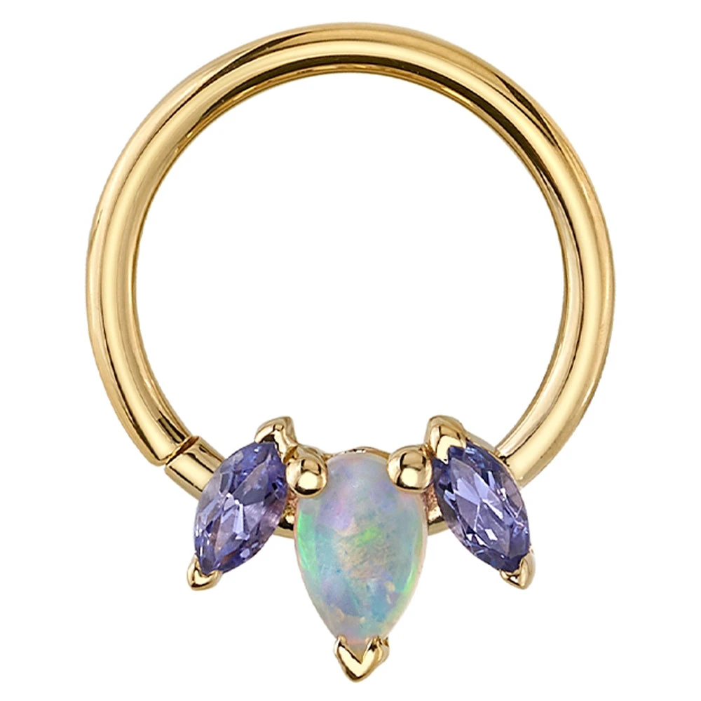 - Material(s): 14K gold, Tanzanite AA, Genuine White Opal AAA