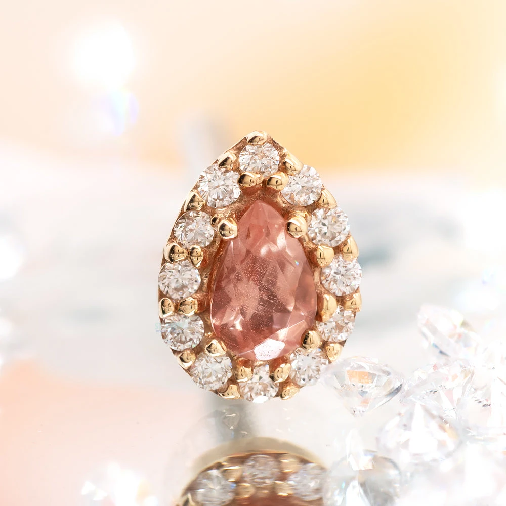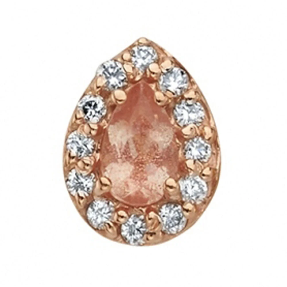 - 7mm x 5mm threaded end with (1) 4mm x 2.5mm Oregon Sunstone Pear in Prong’s & (12) 1mm Round Genuine White Diamonds