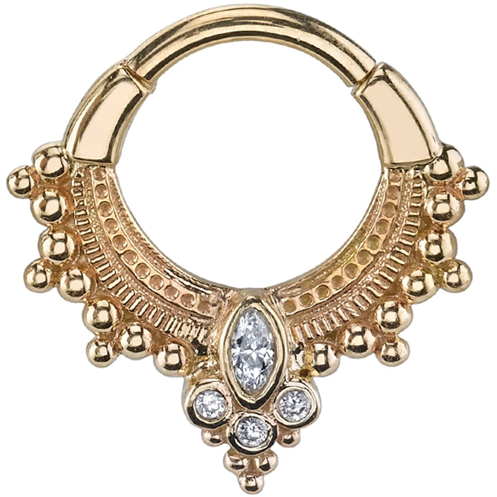 Perfection. The “Andromeda” hinge ring features an Afghan Plate with a mini Marquise Sarai of Diamonds in the center & we love it.