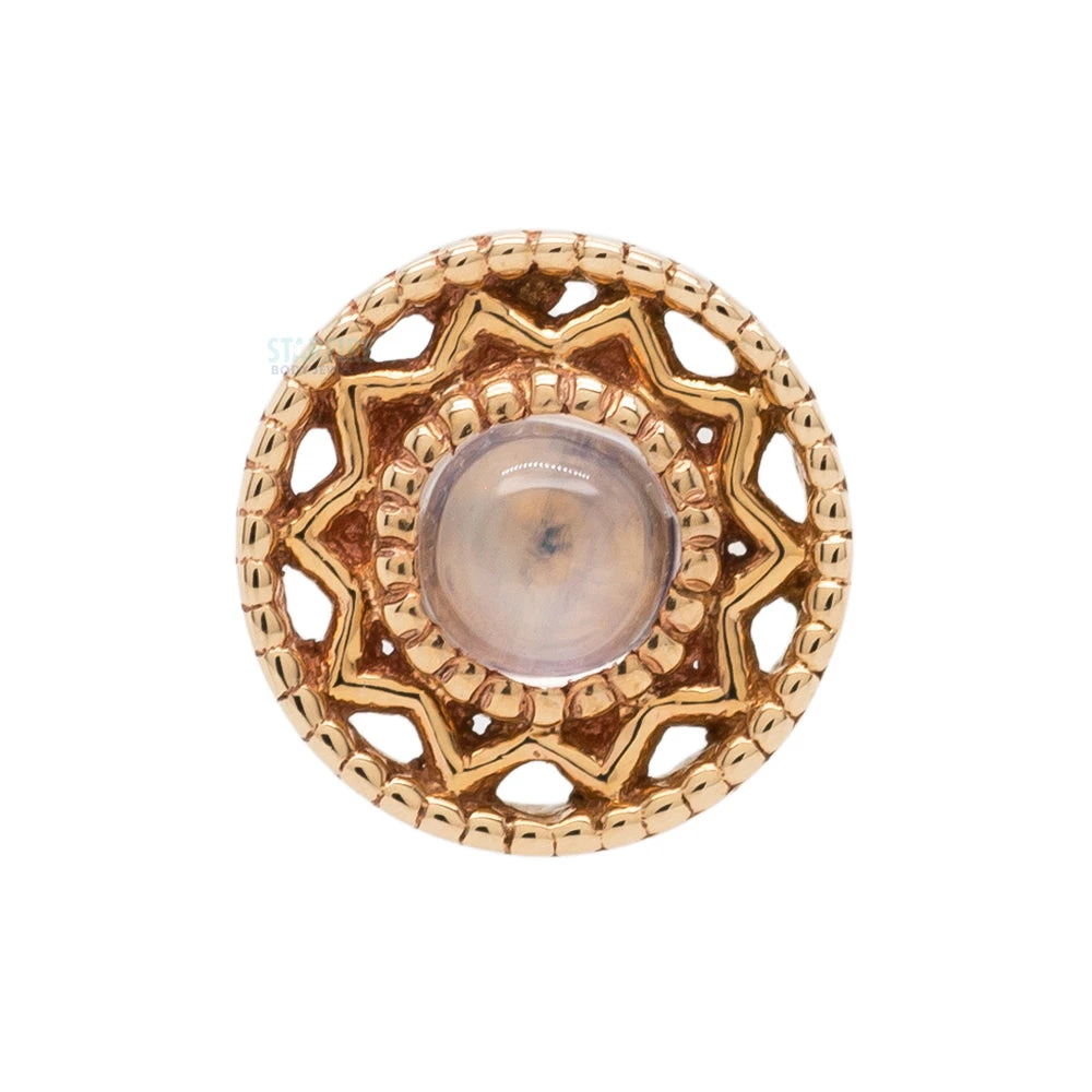 - 6mm decorative end with (1) 2.5mm Round Rainbow Moonstone in Bezel