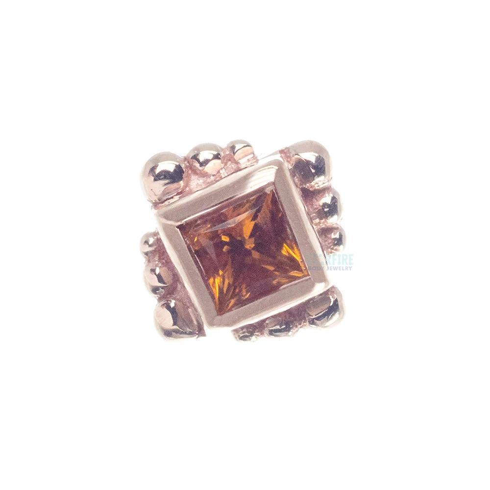 - 2mm Citrine AA princess bezel surrounded by tiny graduating bead accents