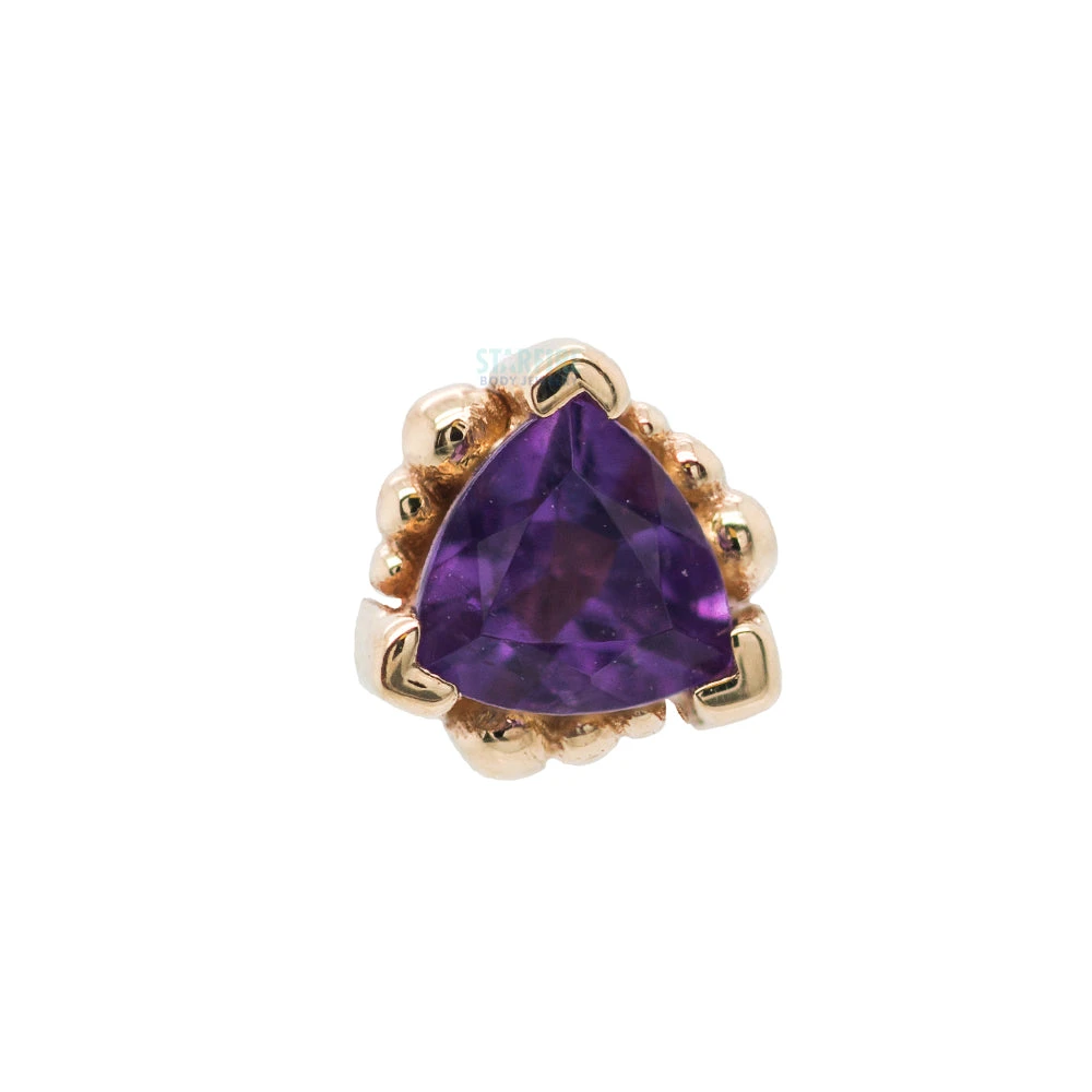 - 4mm end with (1) 3mm Trillion Cut Amethyst AA in Prong’s surrounded by tiny graduating bead accents