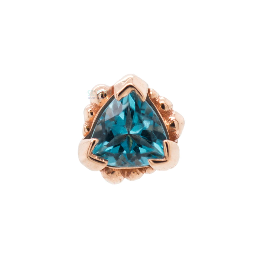 - 4.5mm end with (1) 3mm Trillion Cut Swiss Topaz in Prong’s surrounded by tiny graduating bead accents
