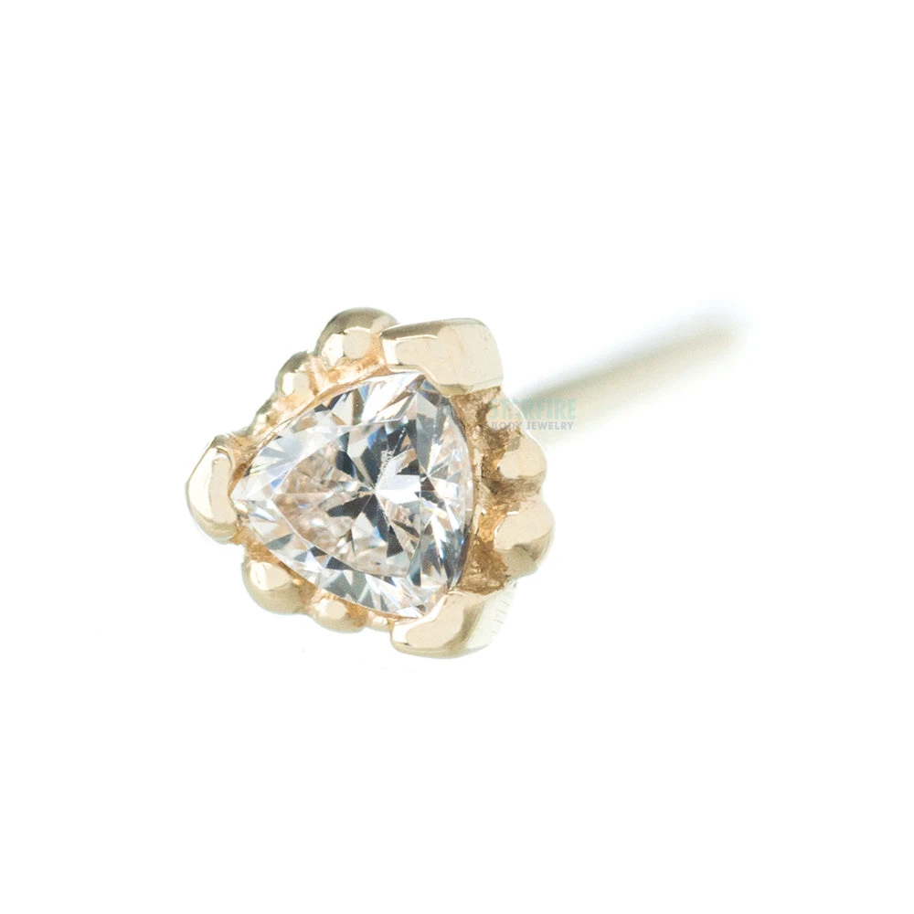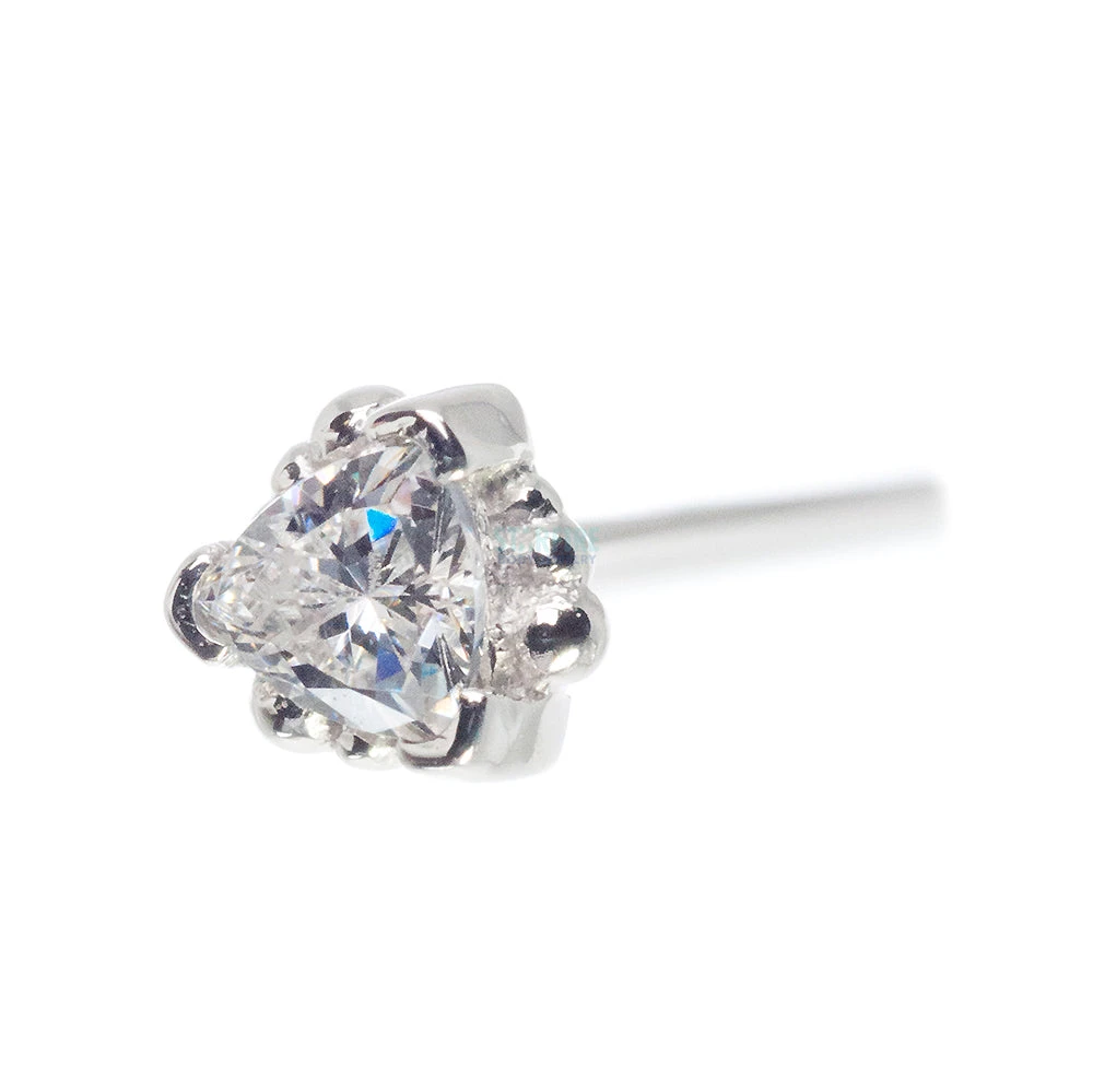 - 4.5mm end with (1) 3mm Trillion Cut White CZ in Prong’s surrounded by tiny graduating bead accents