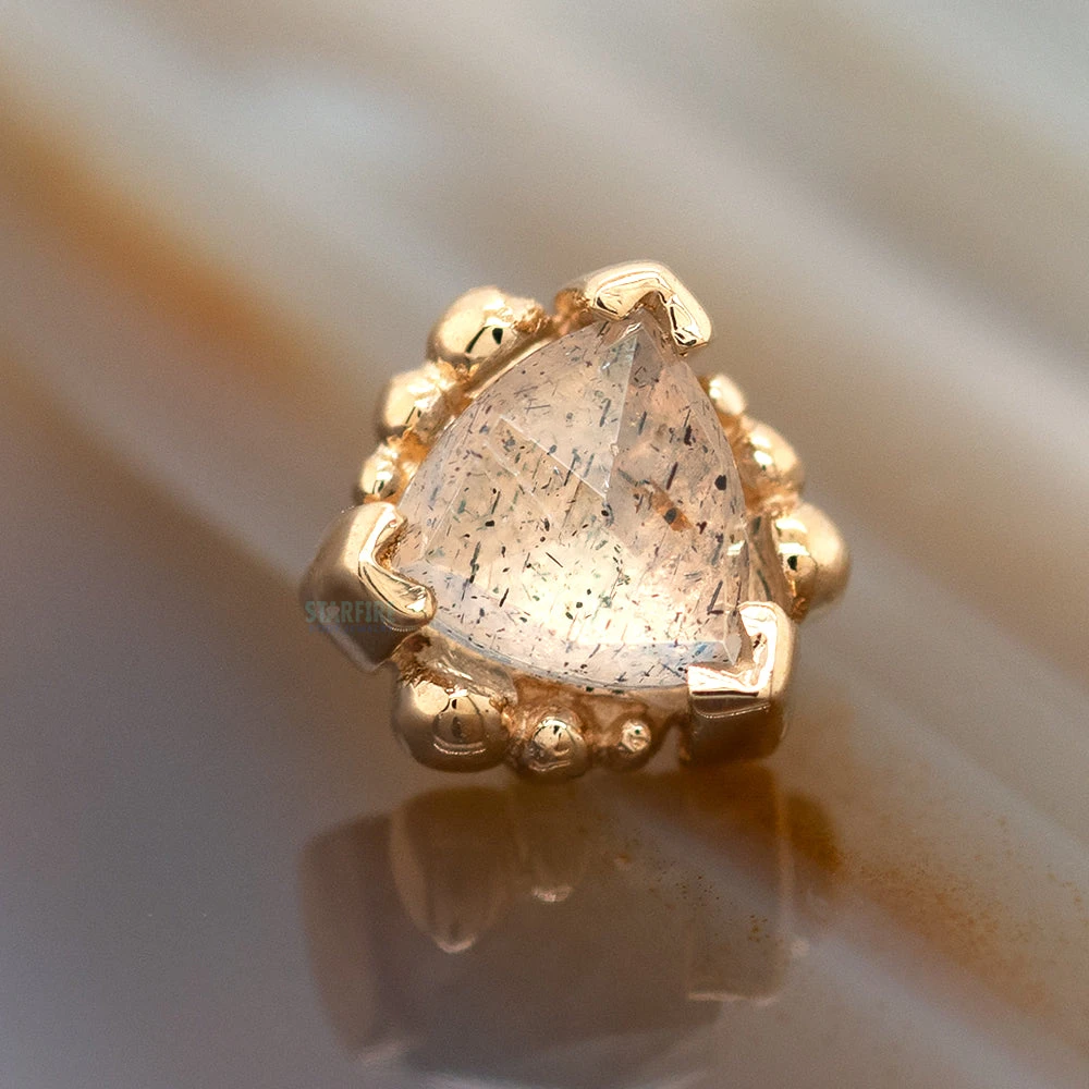- 4.5mm threaded end with (1) 3mm Rose Cut Labradorite in Prong’s surrounded by tiny graduating bead accents