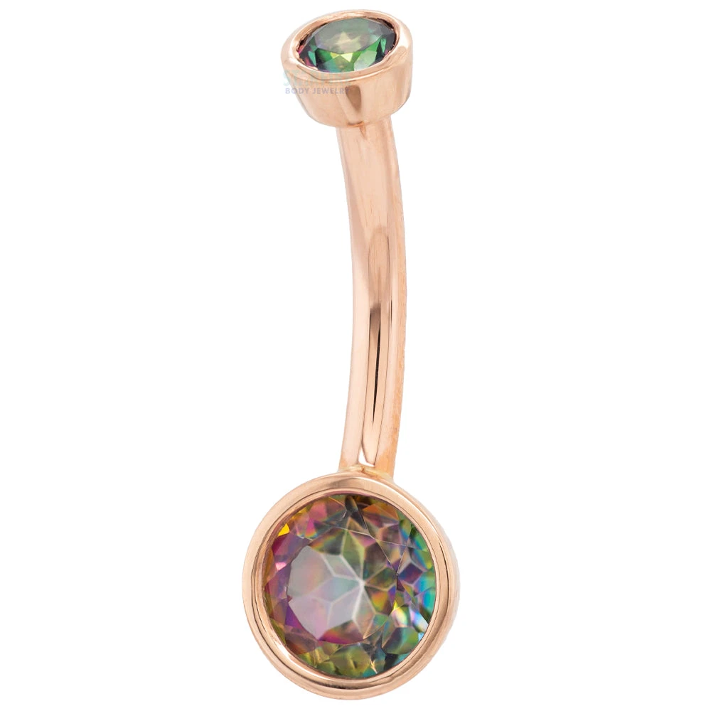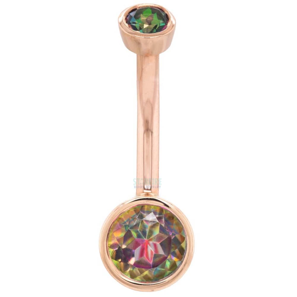 Introducing the Bezel-Set Navel Curve in Gold with Mystic Topaz, the perfect piece for a sparkly belly summary! This BVLA-crafted navel curve is sure to turn heads with its dazzling Mystic Topaz, making sure you stand out no matter where you go! Shine on, you fabulous thing, you!