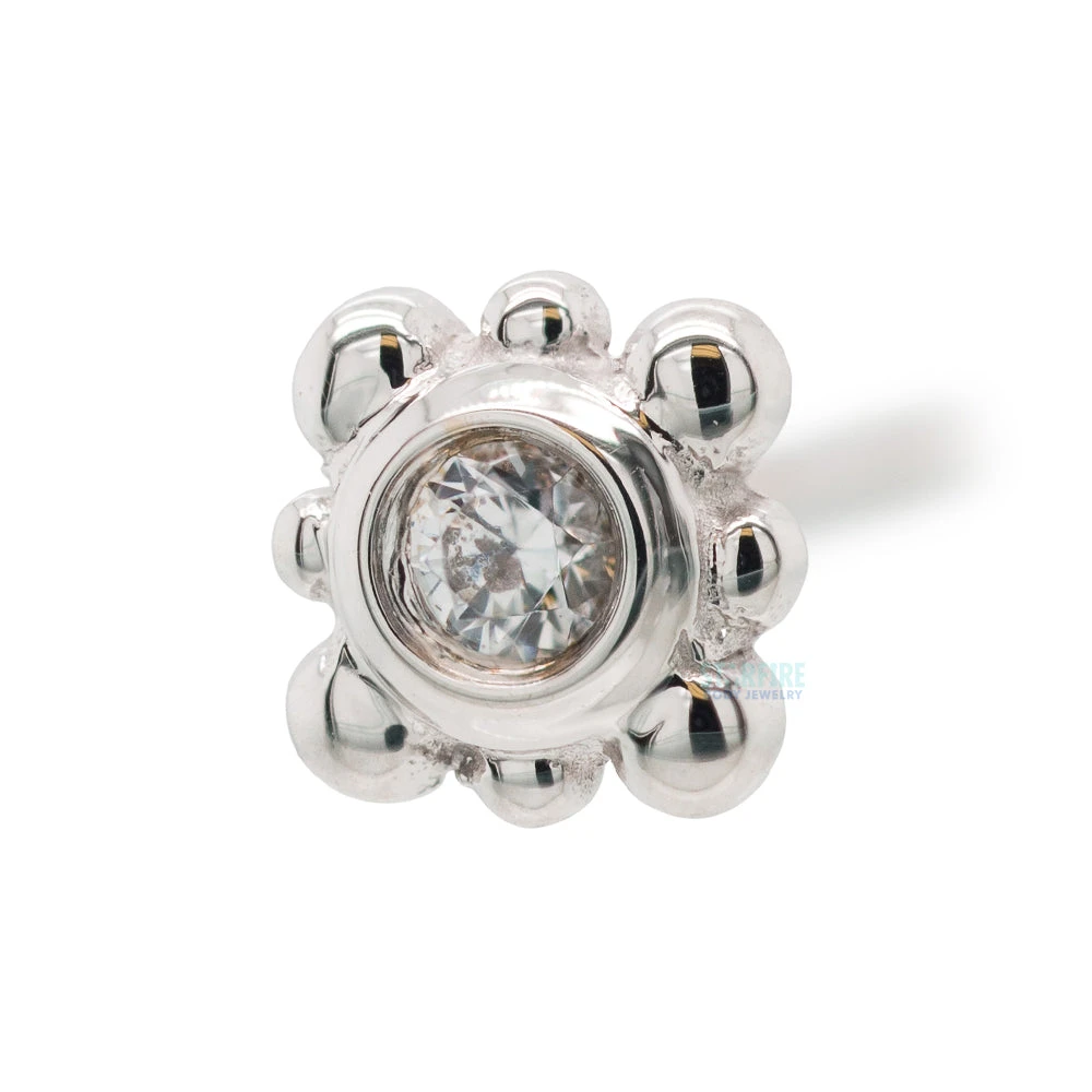 - 5mm end with (1) 2mm Round White CZ in Bezel surrounded by bead accents