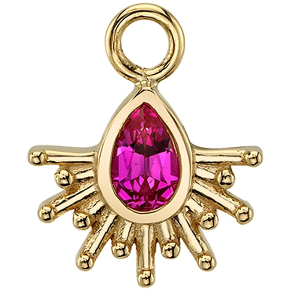 - 9mm x 8mm charm with (1) 4mm x 2.5mm Pear-Cut Chatham Hot Pink Sapphire in Bezel