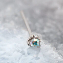 Beaded Trillion Nostril Screw In Gold With Seafoam Tourmaline
