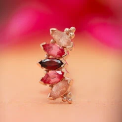 Marquise “Panaraya” Threaded End In Gold With Oregon Sunstone, Padparadscha Sapphire & Garnet