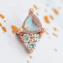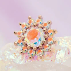 “The Rose” Threaded End In Gold ‘Holiday Collection’ With Garnet Center & Green Tourmaline Petals