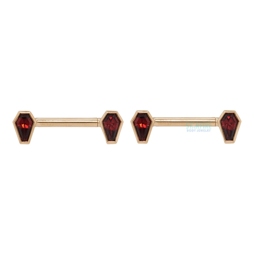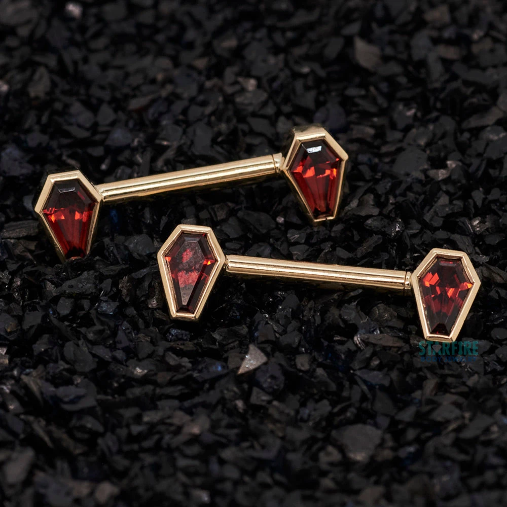 - 7mm x 5mm fixed end with (1) 6mm x 4mm Coffin Garnet in a