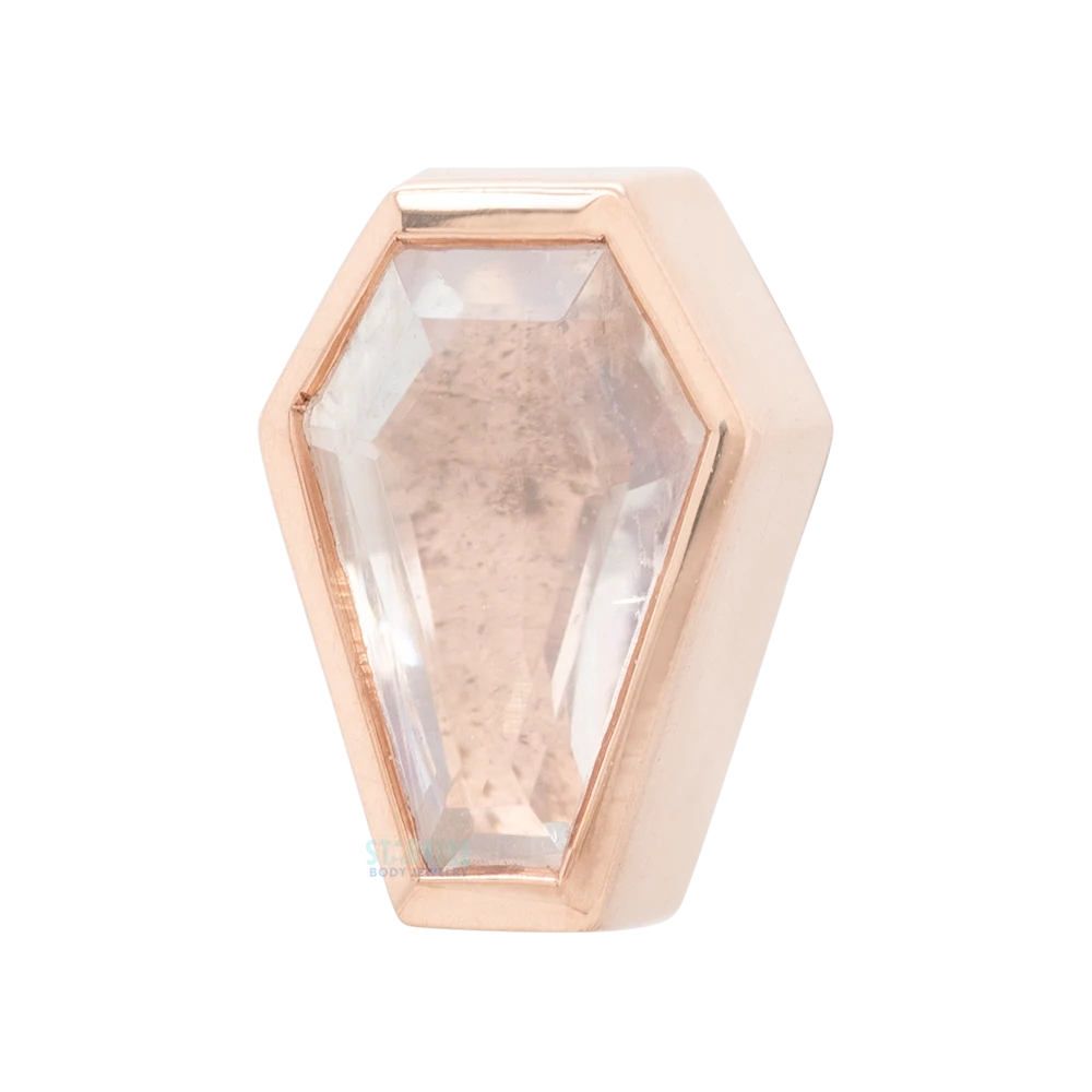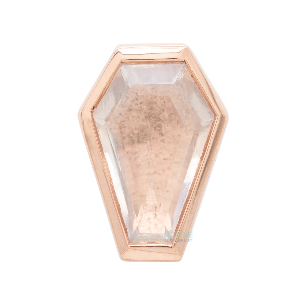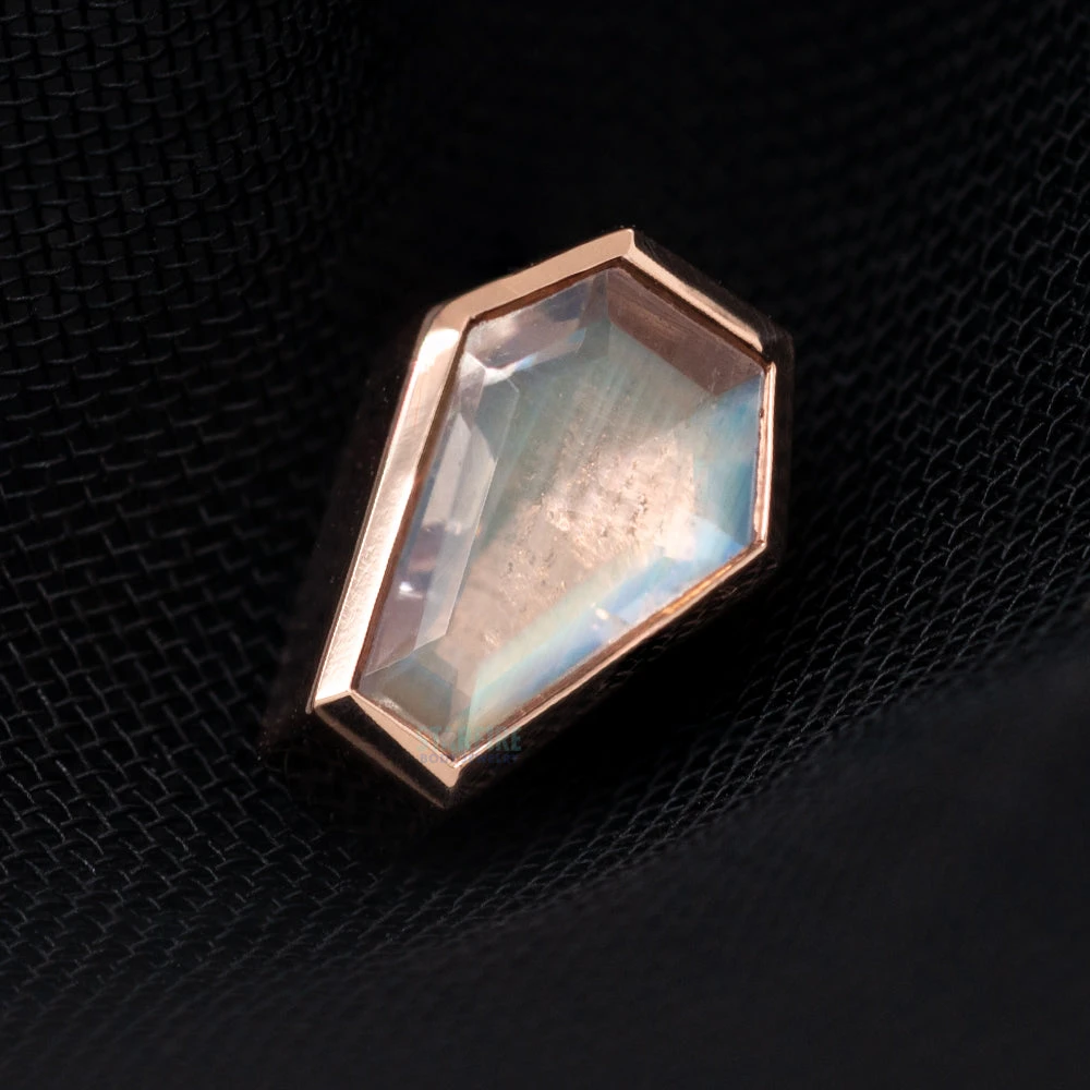 - 7mm x 5mm threaded end with (1) 6mm x 4mm Coffin Cut Rainbow Moonstone in Bezel