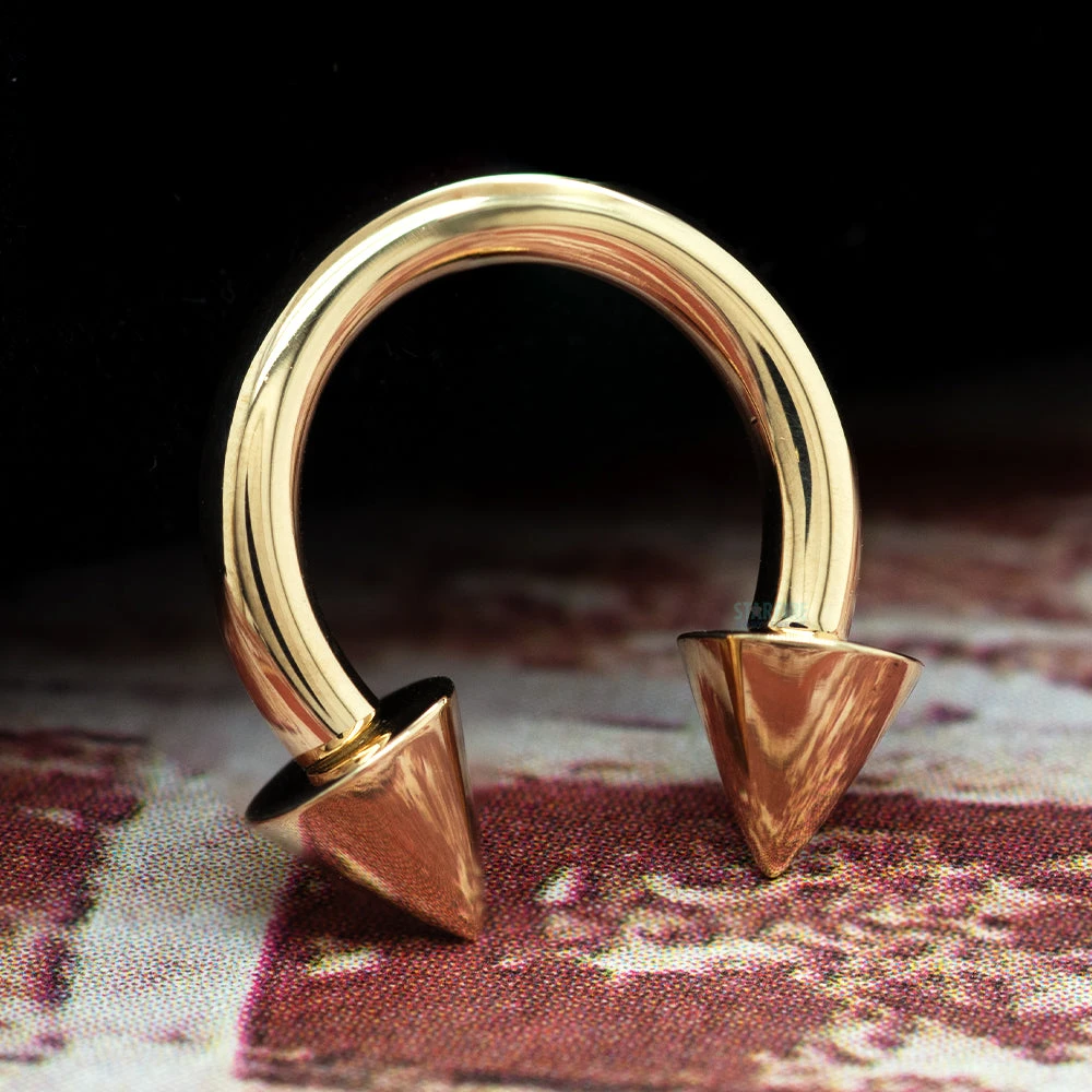 14K Yellow, White or Rose Gold Circular Barbell with Gold Cone Spikes
