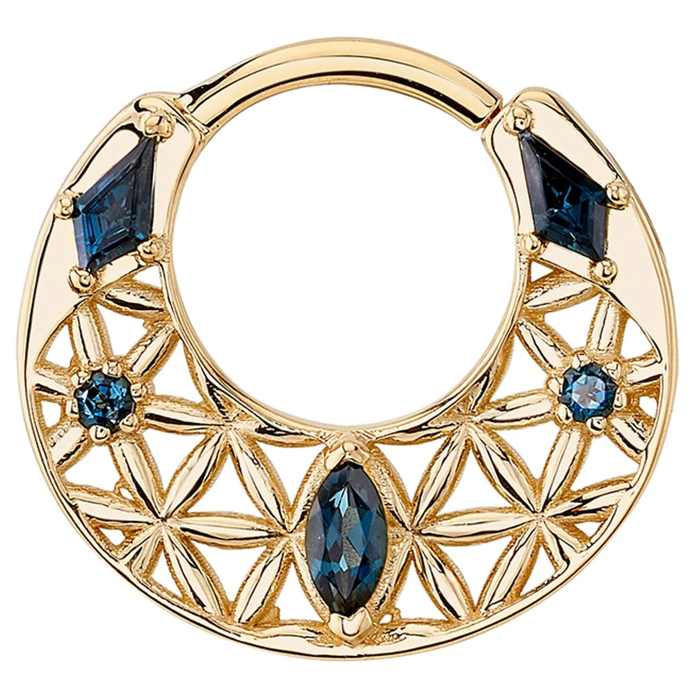 The Cosmic Owl is a truly magnificient hinge ring, the negative space, inspired by geometry, beautifully frames the mesmerizing deep blue gems.