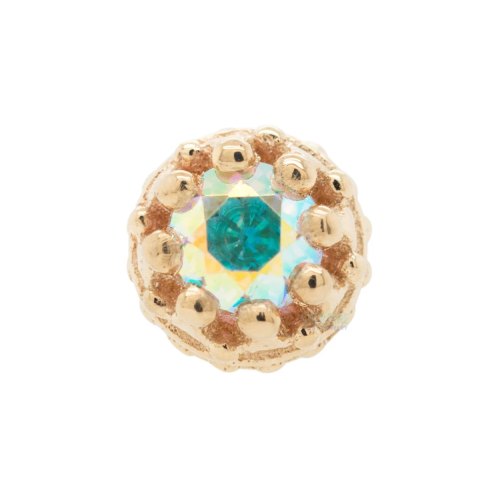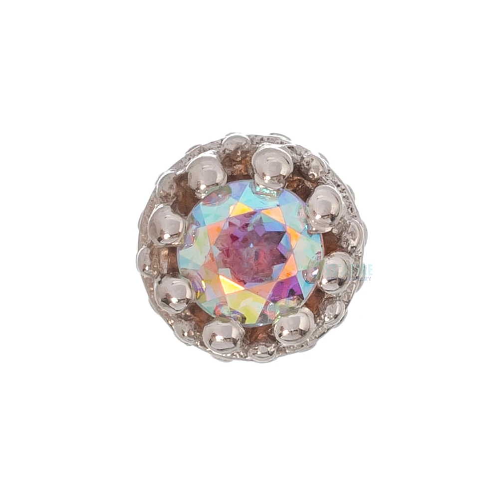 - 5mm crown with (1) 3mm Round Mercury Mist Topaz in Prong’s
