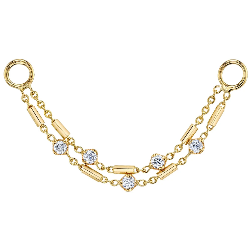 Two layers of unique ophelia chains adorned with glistening Diamonds, makes this piece truly “Devine”.