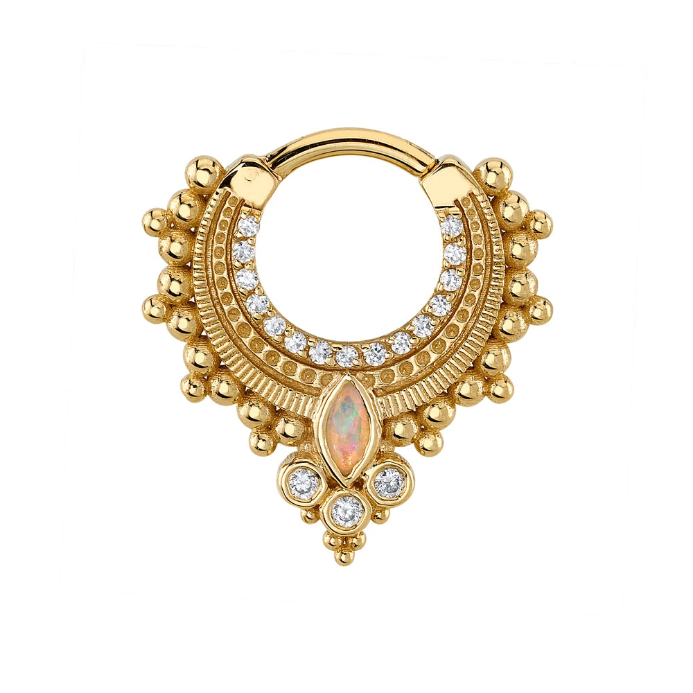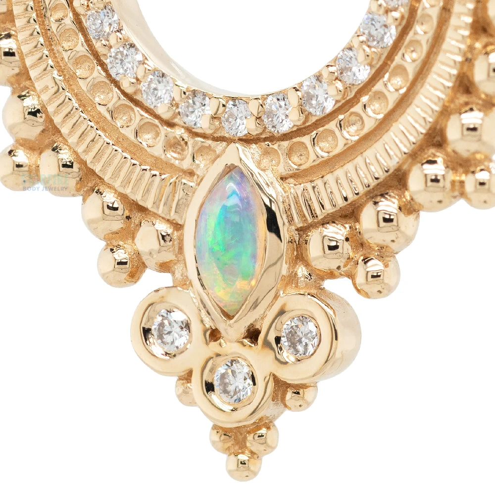 - Material(s): 14K gold, Genuine White Diamonds, White Opal AAA