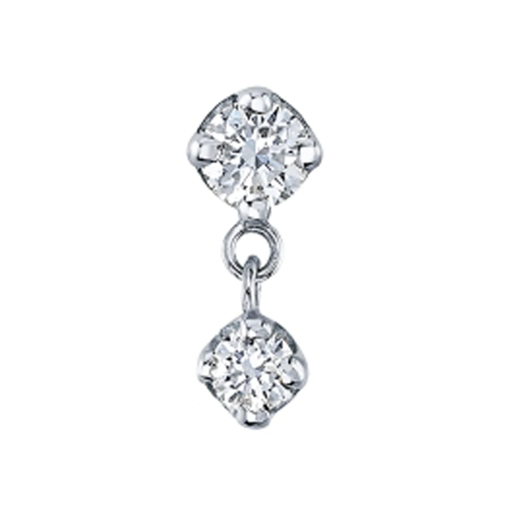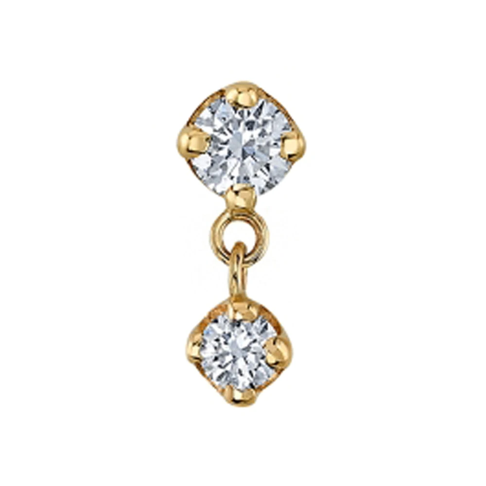 This piece features a “Duet” of two different sized gems. One Diamond above and a second dangling beneath to add movement.