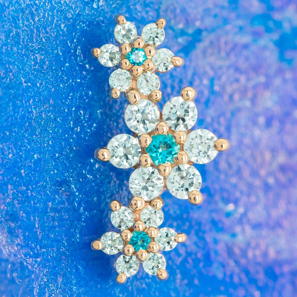 If you love florals and stars, then you’ll love wearing the Estrella. With a gemstone in place of each petal and tiny bead accents, it creates a starburst cluster of three flower #2’s.