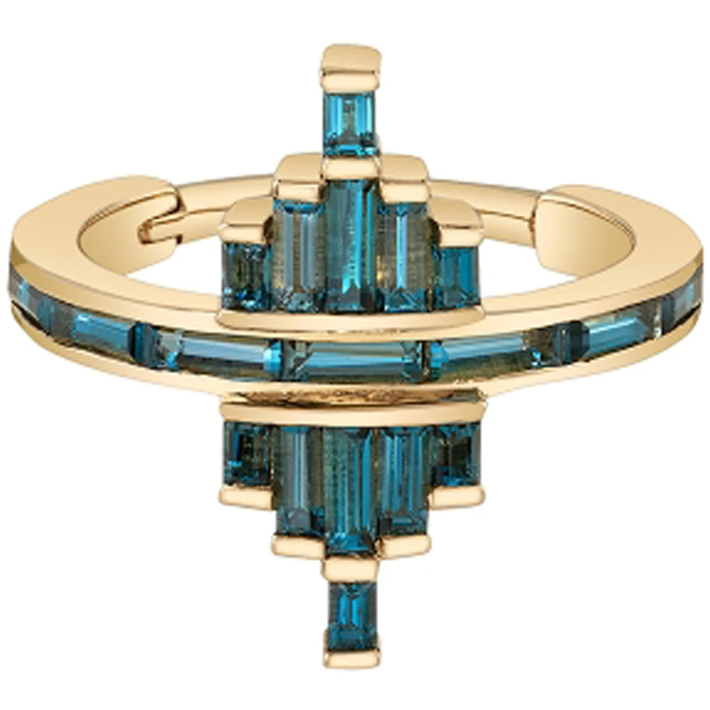 Adorn yourself with this striking piece with mesmerizing baguette-cut London Blue Topaz delicately wrapped around the ring.