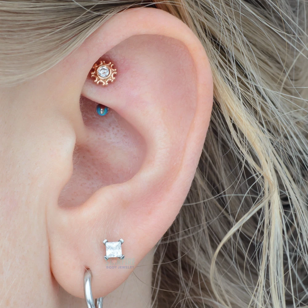 Commonly worn in: earlobes, sensitive lobes, cartilage, conch, medusa, philtrum, labret, tragus, monroe