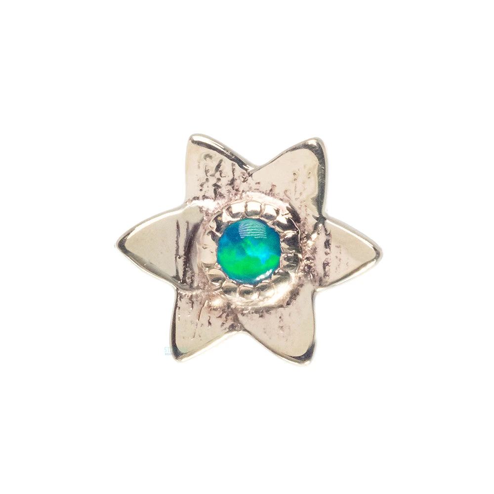- 4.5mm flower with 1.5mm Dark Blue Opal in beaded Bezel