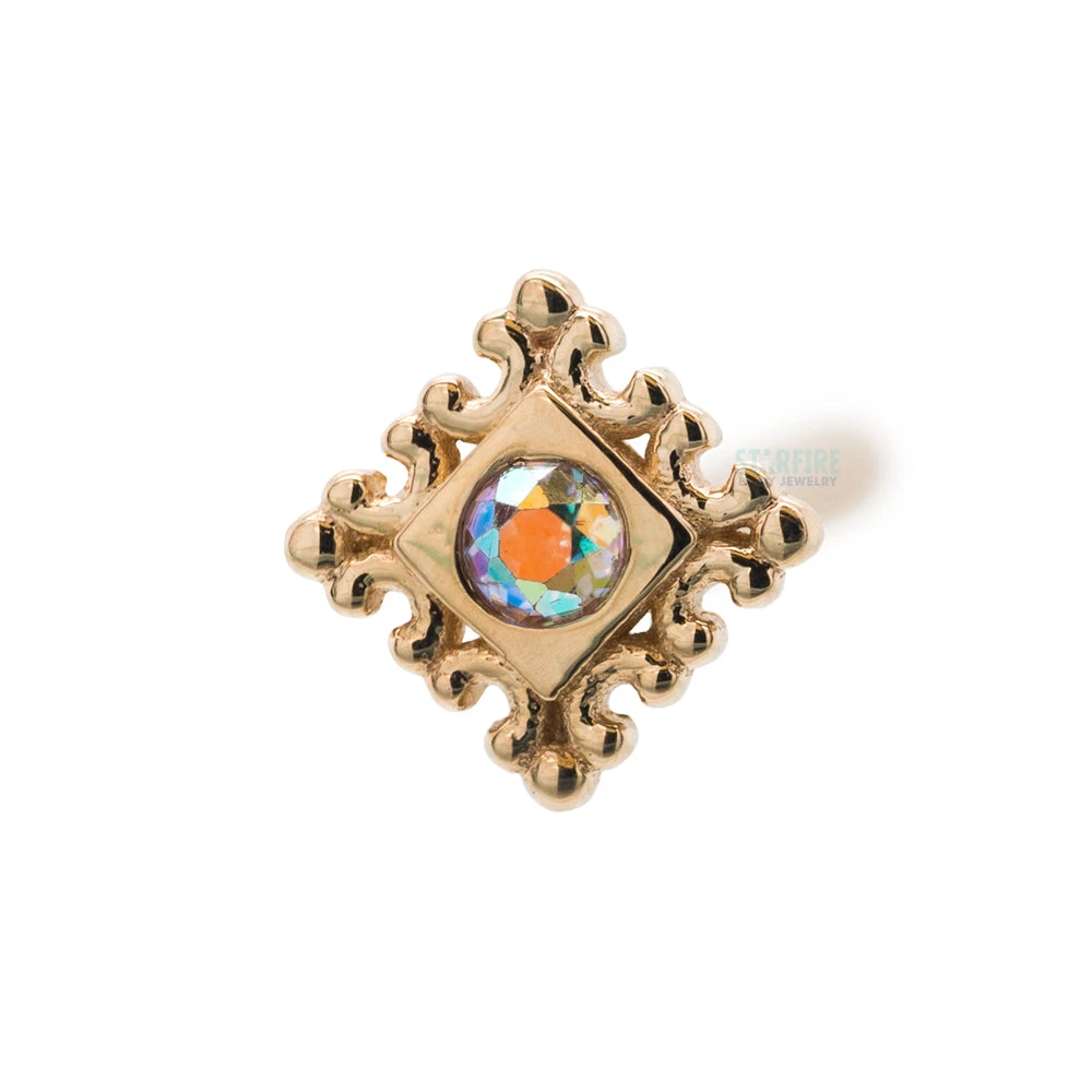 - 5mm overall size with (1) 2mm Round Mercury Mist Topaz in Bezel
