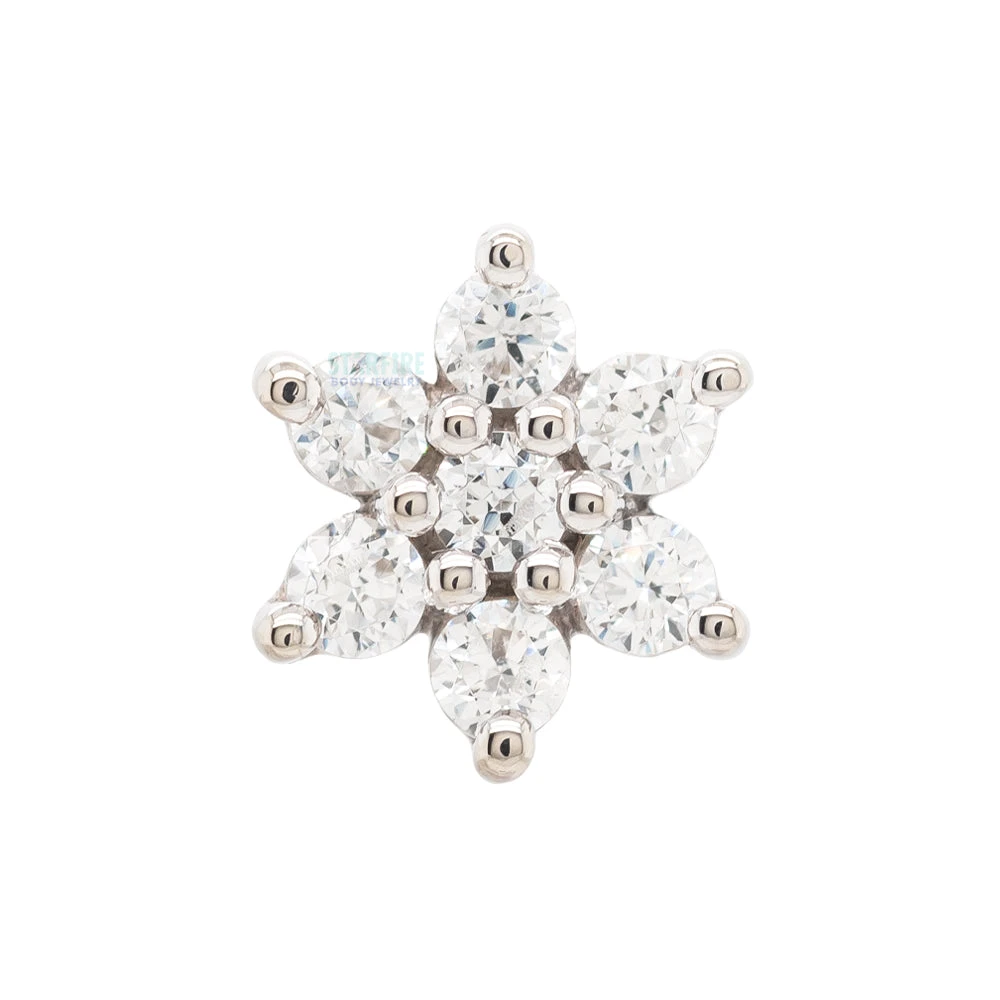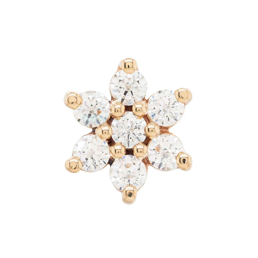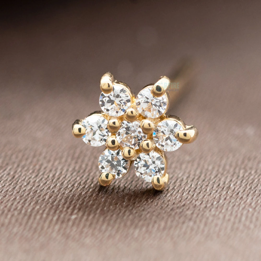 - 4mm flower with (6) 1mm Round White CZ’s in Prong’s (petals) & (1) 1mm Round White CZ in Prong’s (center)