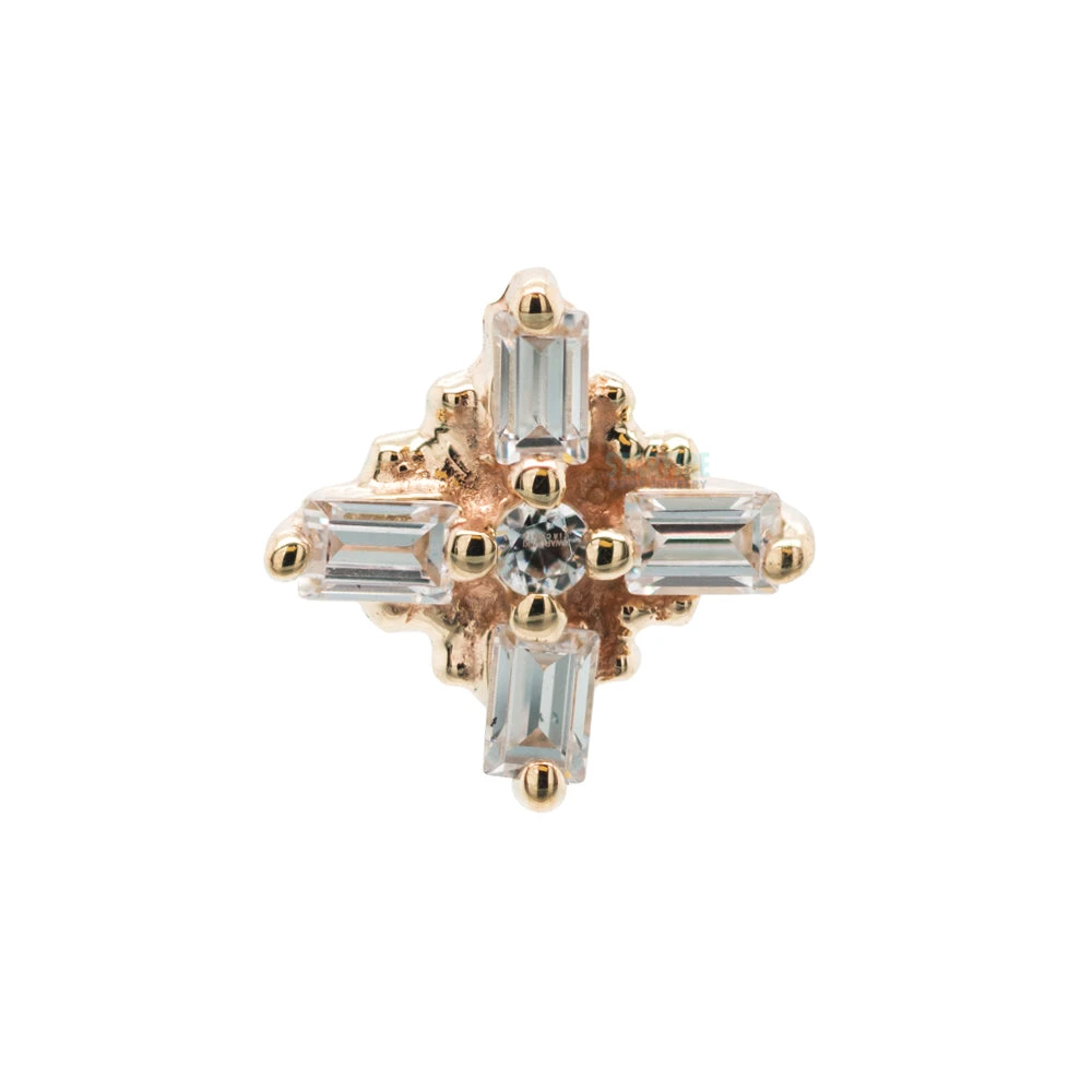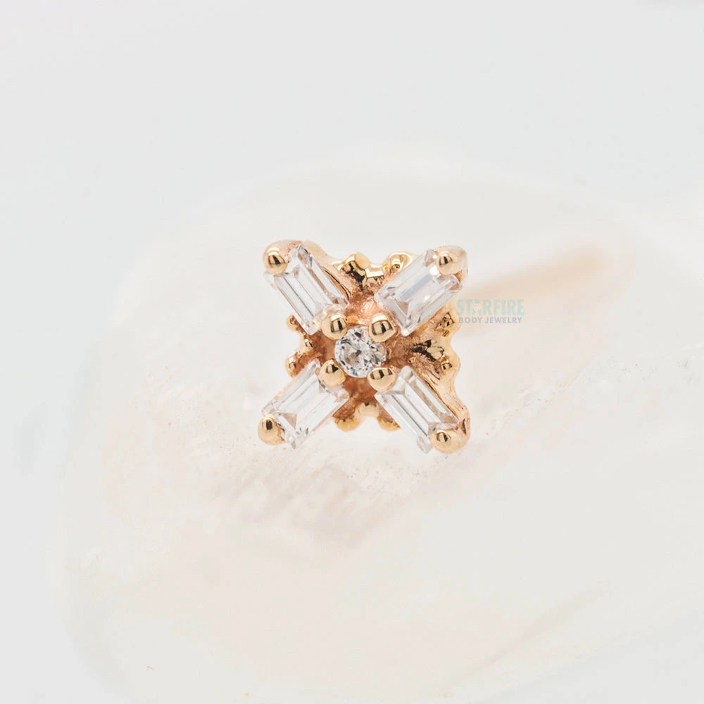 - 5mm overall with (4) 1.5mm x 1mm Straight Baguettes with (1) 1mm Round CZ in center in Prong’s