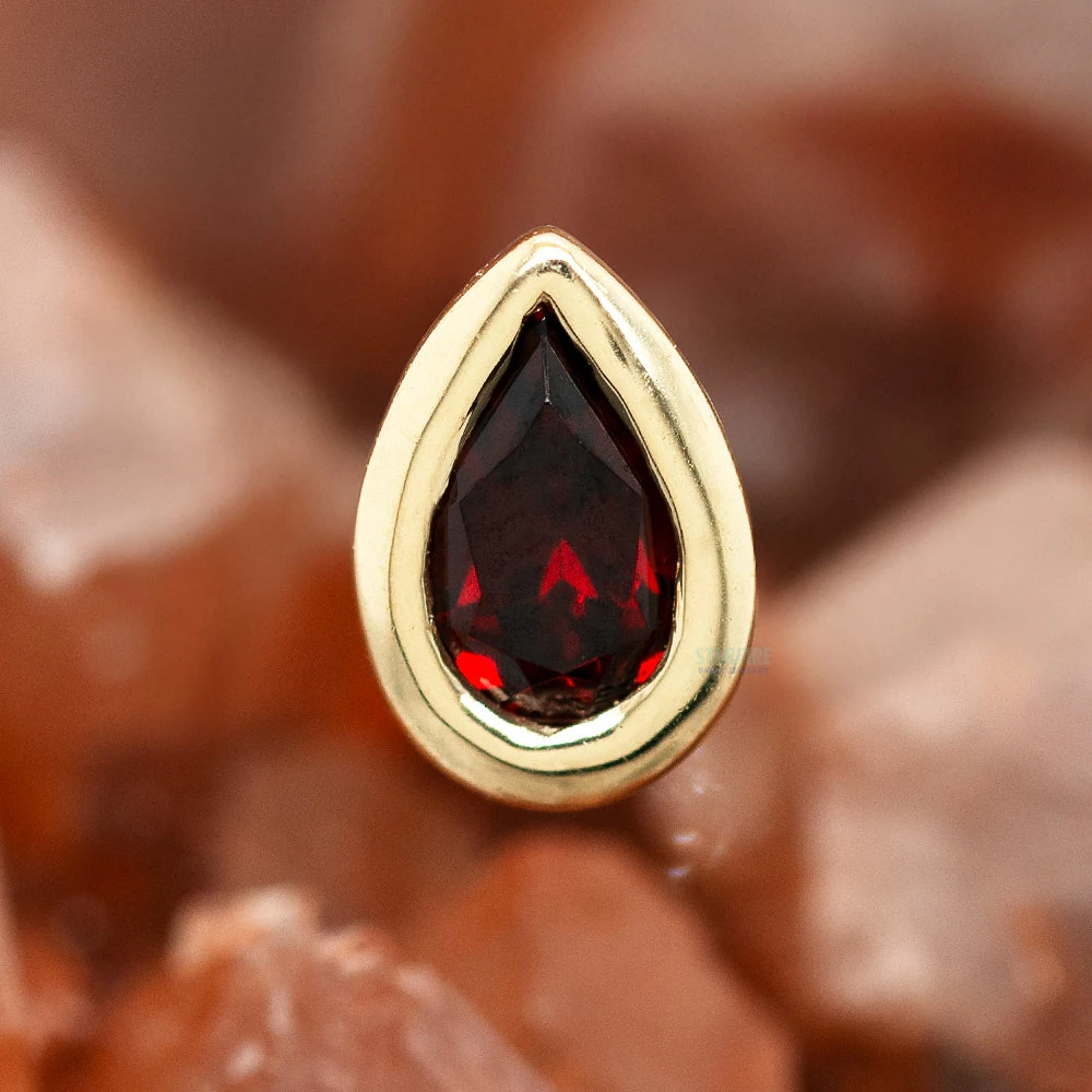 - 6mm x 4mm Faceted Garnet AA Pear with low profile Bezel threaded end