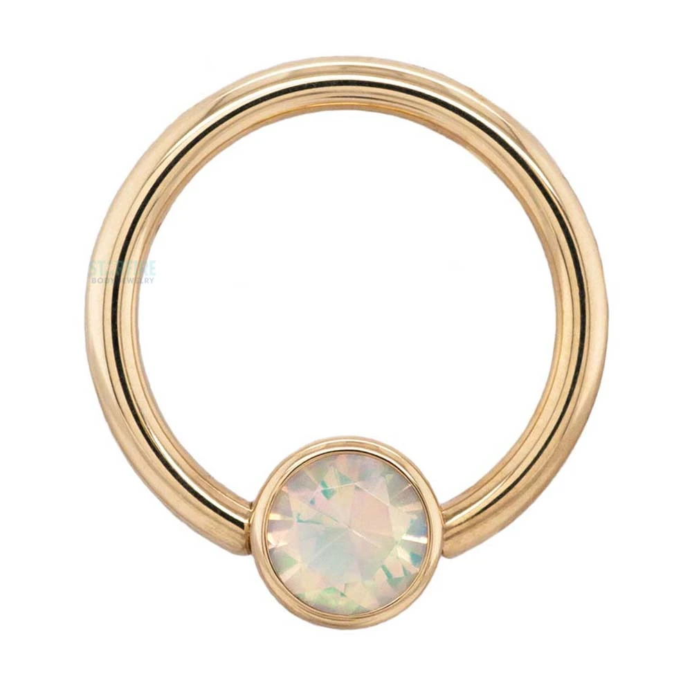 - (1) 3mm Round Faceted Water Opal in open back Bezel captive bead