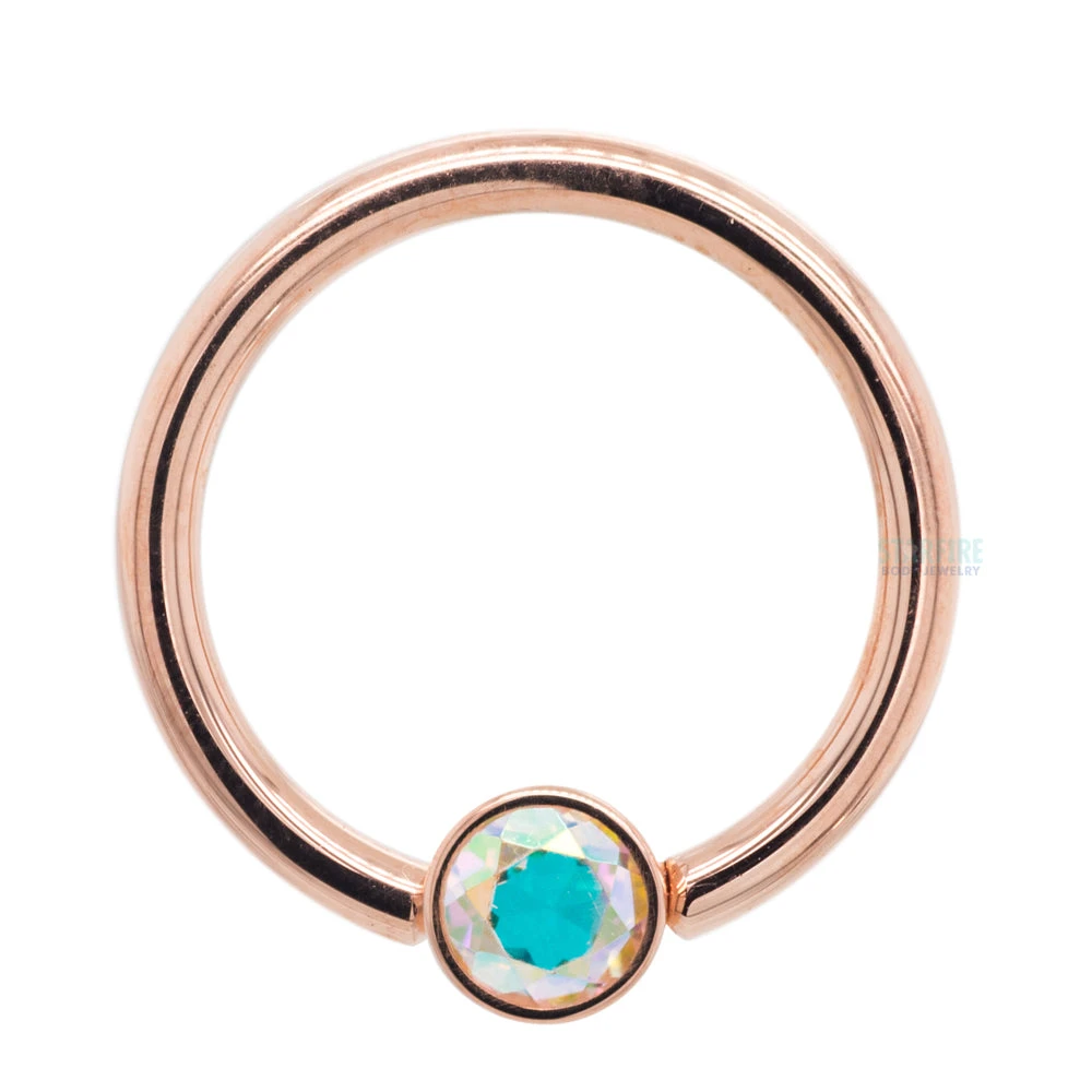 - (1) 3mm Round Mercury Mist Topaz in open back Bezel captive bead