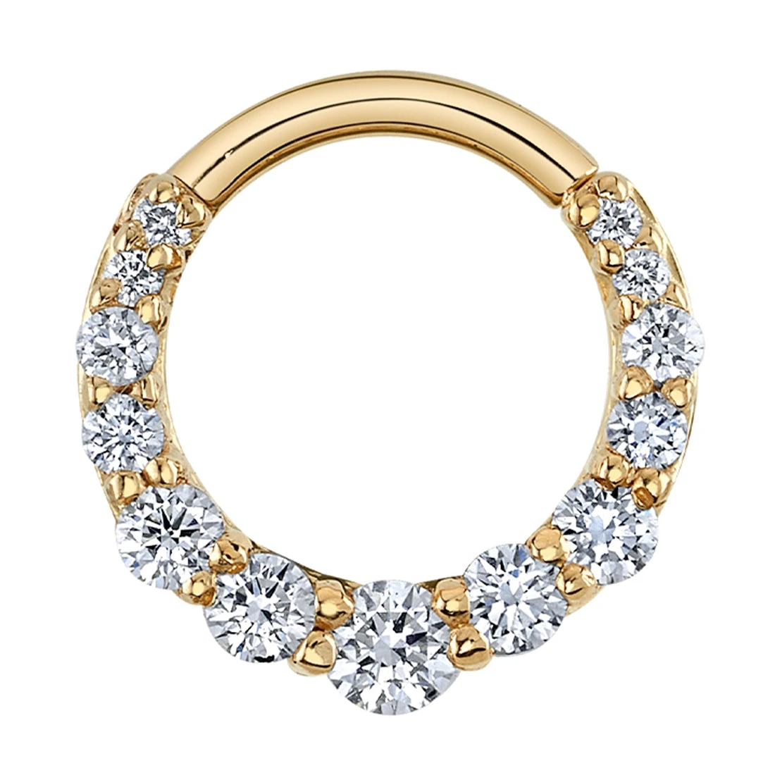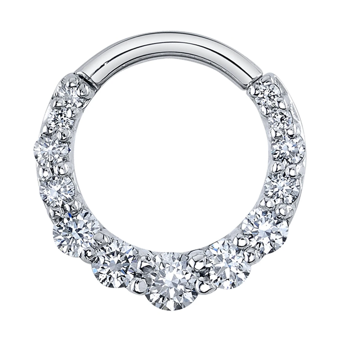 - (1) 2.5mm Round Genuine White Diamond surrounded by (4) 2mm Round Genuine White Diamonds, (4) 1.5mm Round Genuine White Diamonds & (4) 1mm Round Genuine White Diamonds in Prong’s (Number of gems will vary based on diameter)