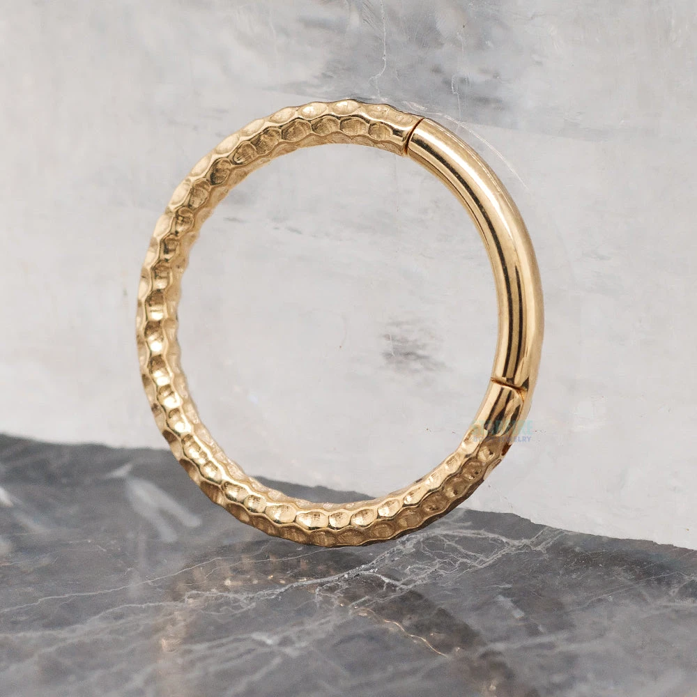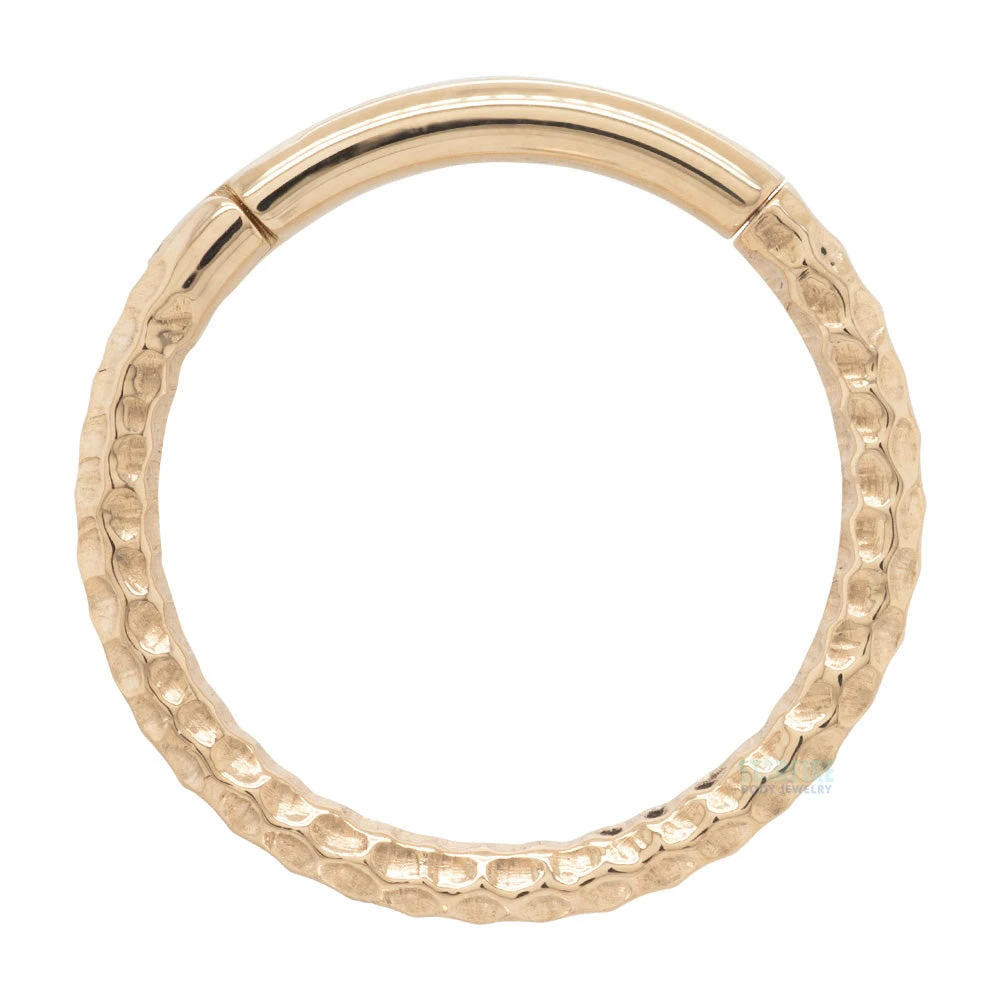 If you’re looking for sophisticated style, you’ve got it here. The hammered finish adds an elegant touch to this hinge ring.