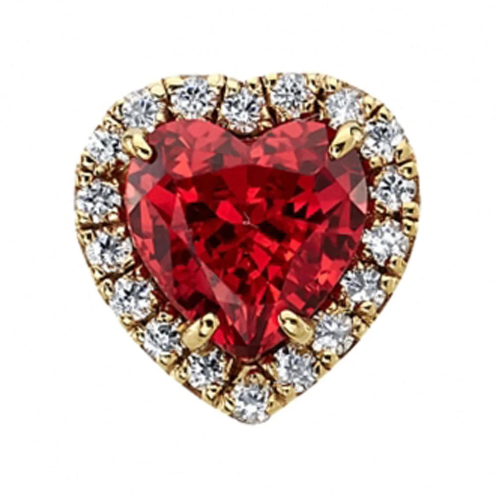 We love everything about this red, gemmed “Heart Altura” that is surrounded by a ring of white diamonds.