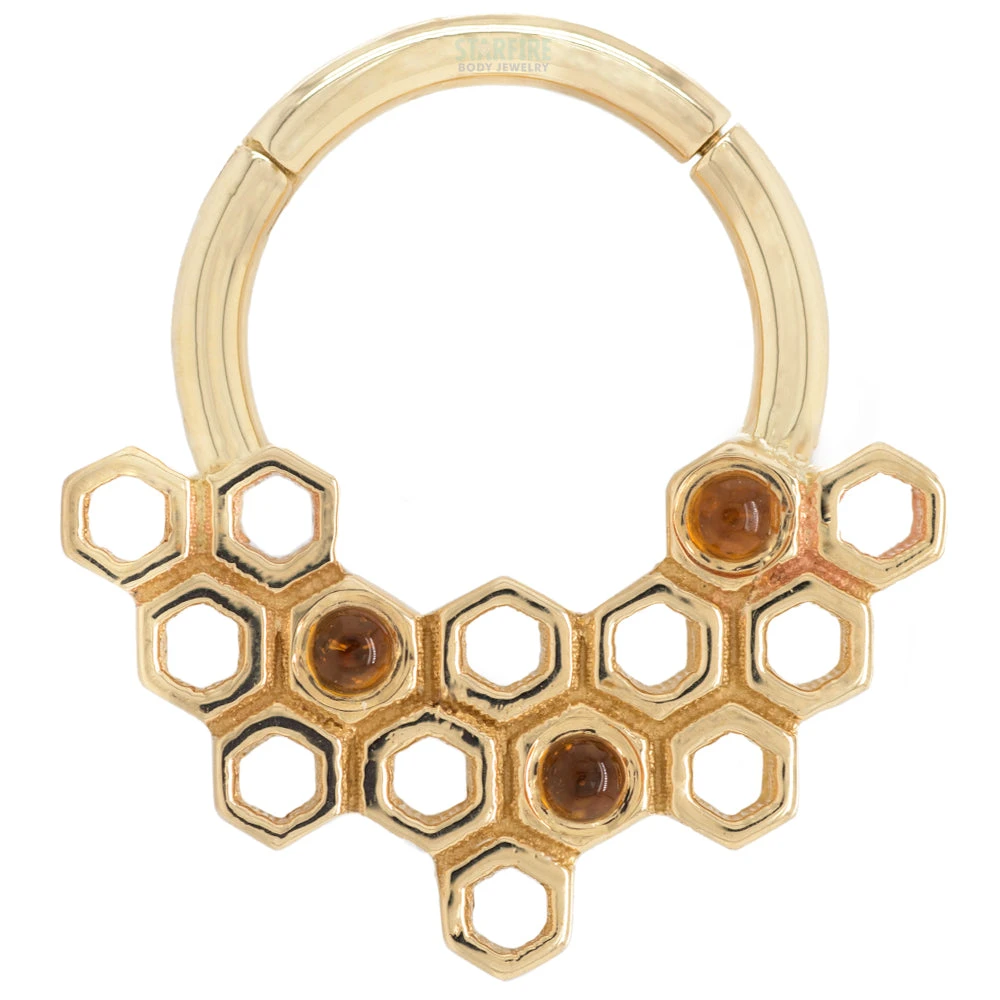 - 14mm Honeycomb with (3) 1.5mm Round Citrine Cabochons in Bezel