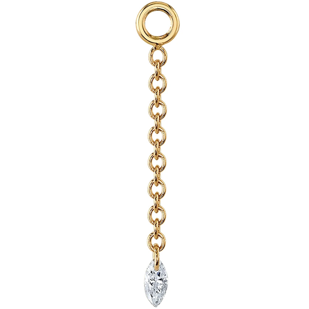 - Cable Chain length is 1/2″ with (1) 3mm x 1.5mm Drilled Marquise-Cut Genuine White Diamond