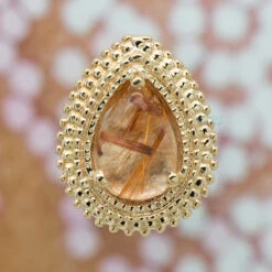 Adorn your midriff with some “Kandy”. This piece features a single gemstone center surrounded by round gemstones in a bezel cup setting and tiny bead accents, as well as a threaded bead top.