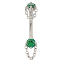 - 10mm fixed bottom holding (1) 2mm Round Genuine White Diamond VS in Bezel with (4) 1.25mm Round Genuine White Diamond VS in Bezel with tiny bead accents & 5/32″ threaded ball top