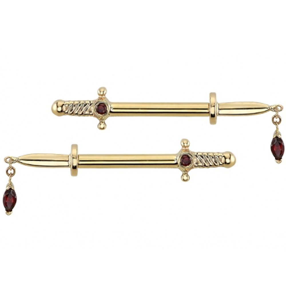 - Fixed end with (1) 1.25mm Round Genuine Garnet in a Bezel Hilt & a dangle with (1) 3mm x 1.5mm Marquise-Cut Genuine Garnet in Prong’s