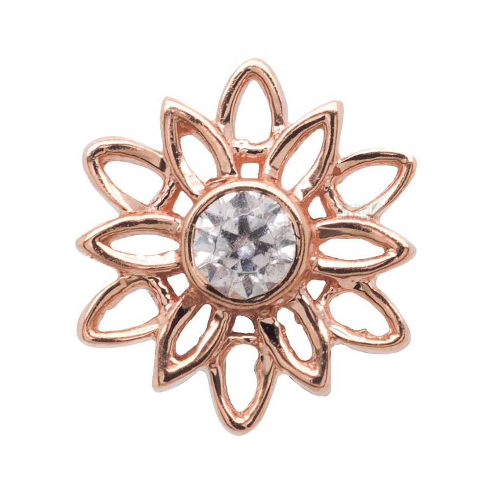 The negative space in the Marisol flower highlights the gemstone in the center tastefully.