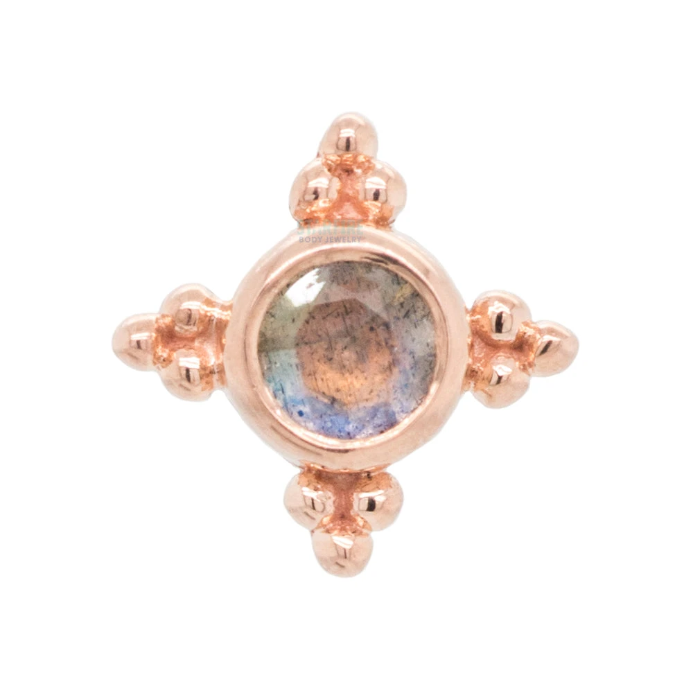 Are you into rare gems? This “Mini Kandy” end uses groups of tiny bead accents to highlight a single Faceted Labradorite in the center.