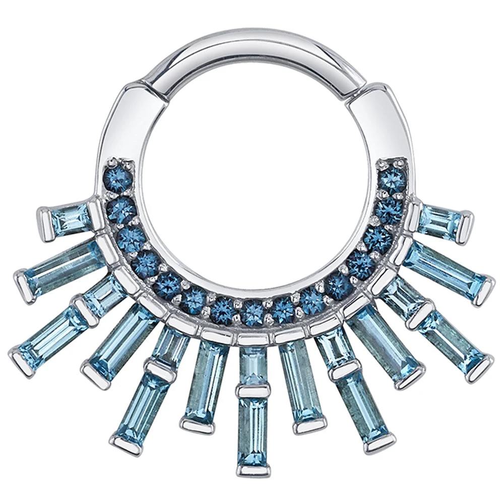 Feel on top of the world with this fabulous hinge ring featuring baguette Swiss Blue Topaz shining down like a gorgeous mountain light.