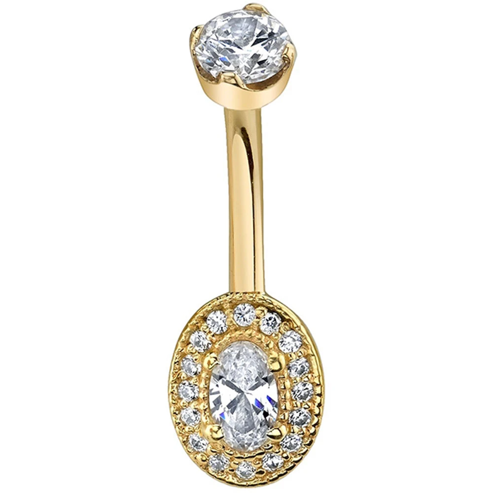 - 9mm x 7mm halo fixed bottom holding (1) 5mm x 3mm Oval-Cut White CZ surrounded by (16) 1mm Round White CZ’s in Prong’s and (1) 4mm White CZ in Prong threaded top