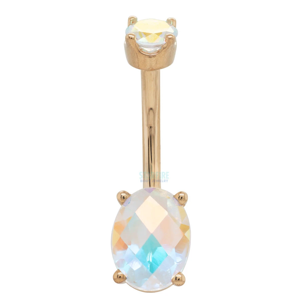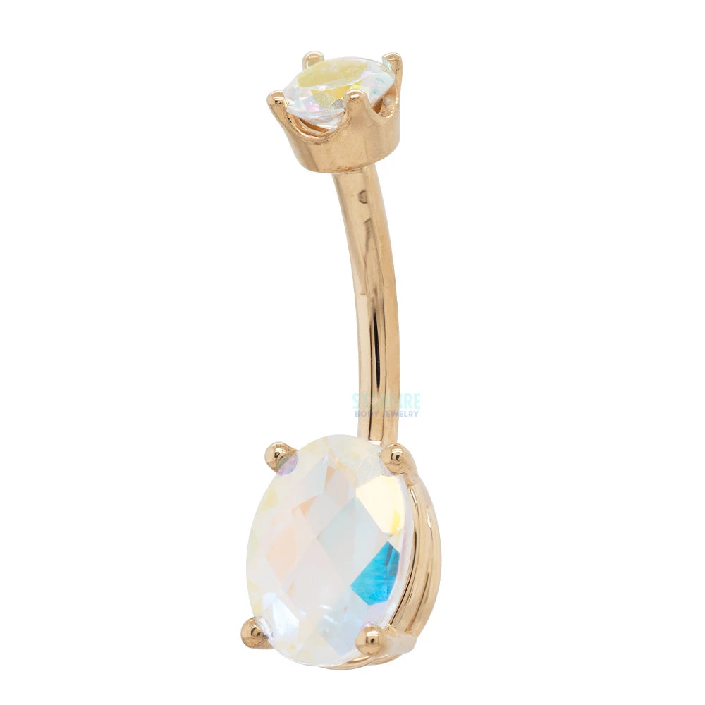 Sizzle in style with this navel curve adorning a dreamy & whimsical checkerboard Mercury Mist Topaz!
