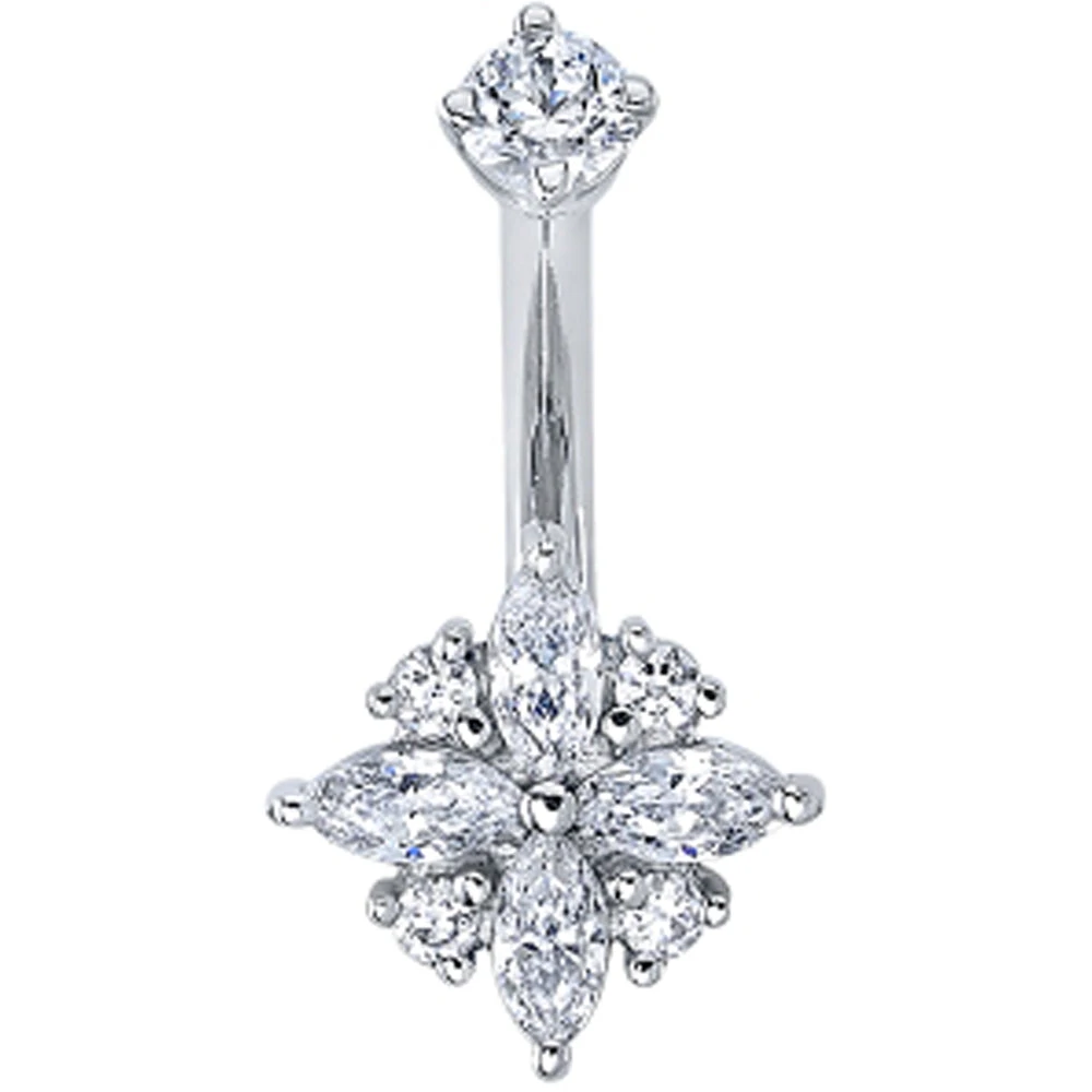 - 9mm Pleades fixed bottom with (4) 4mm x 2mm Marquise-Cut Genuine White Diamonds & (4) 1.5mm Round Genuine White Diamonds accents in Prong’s with 3mm Round Genuine White Diamond in Prong’s threaded top