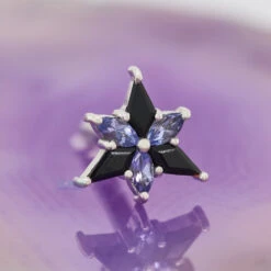“Saamnang” Threaded End In Gold With Tanzanite, Rainbow Moonstone, Light Amethyst & Amethyst