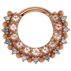 “Horizon” Hinge Ring In Gold With Oregon Sunstone & Grey Sapphire With Sandblasted Bead Accents