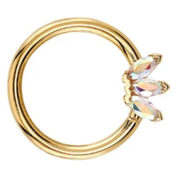 Triple Marquise Fan Forward Facing Nipple Barbells In Gold With Oregon Sunstone & Zawadi Sapphire